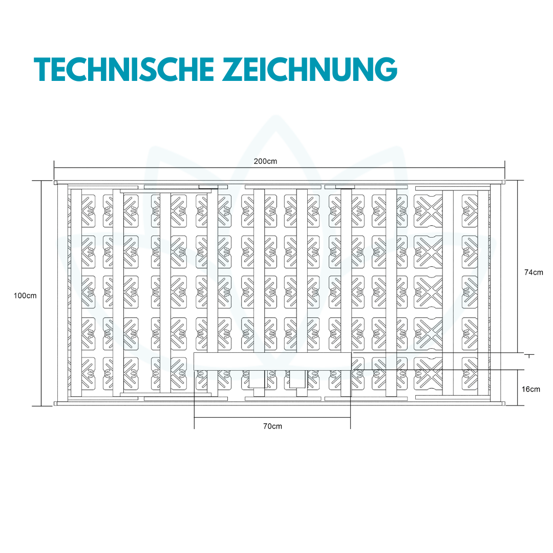 Unsere elektrisch verstellbaren Teller Lattenroste sind dann ein paar Zentimeter kleiner, wodurch sie später perfekt in Ihren Bettrahmen gelegt werden können.